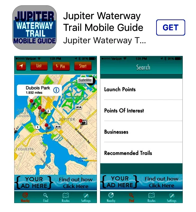 Marine fanatics in the Jupiter area now have a hi-tech way to circumnavigate local waterway routes. The Jupiter Waterway Trail Mobile Guide is a downloadable app available for your smartphone.  The trail guide allows users to find and map trails along the 39 miles of waterways in the Jupiter area.  Users can even share their favorite routes and find points of interest.