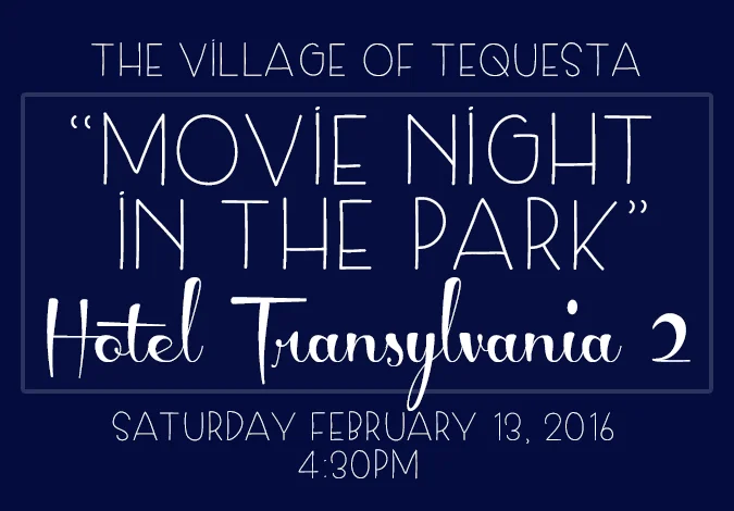 The charming Village of Tequesta will be hosting a movie night in the park this Saturday, February 13, 2016. This weekend’s feature film is “Hotel Transylvania 2” a perfect film for kids, families or even just adults.